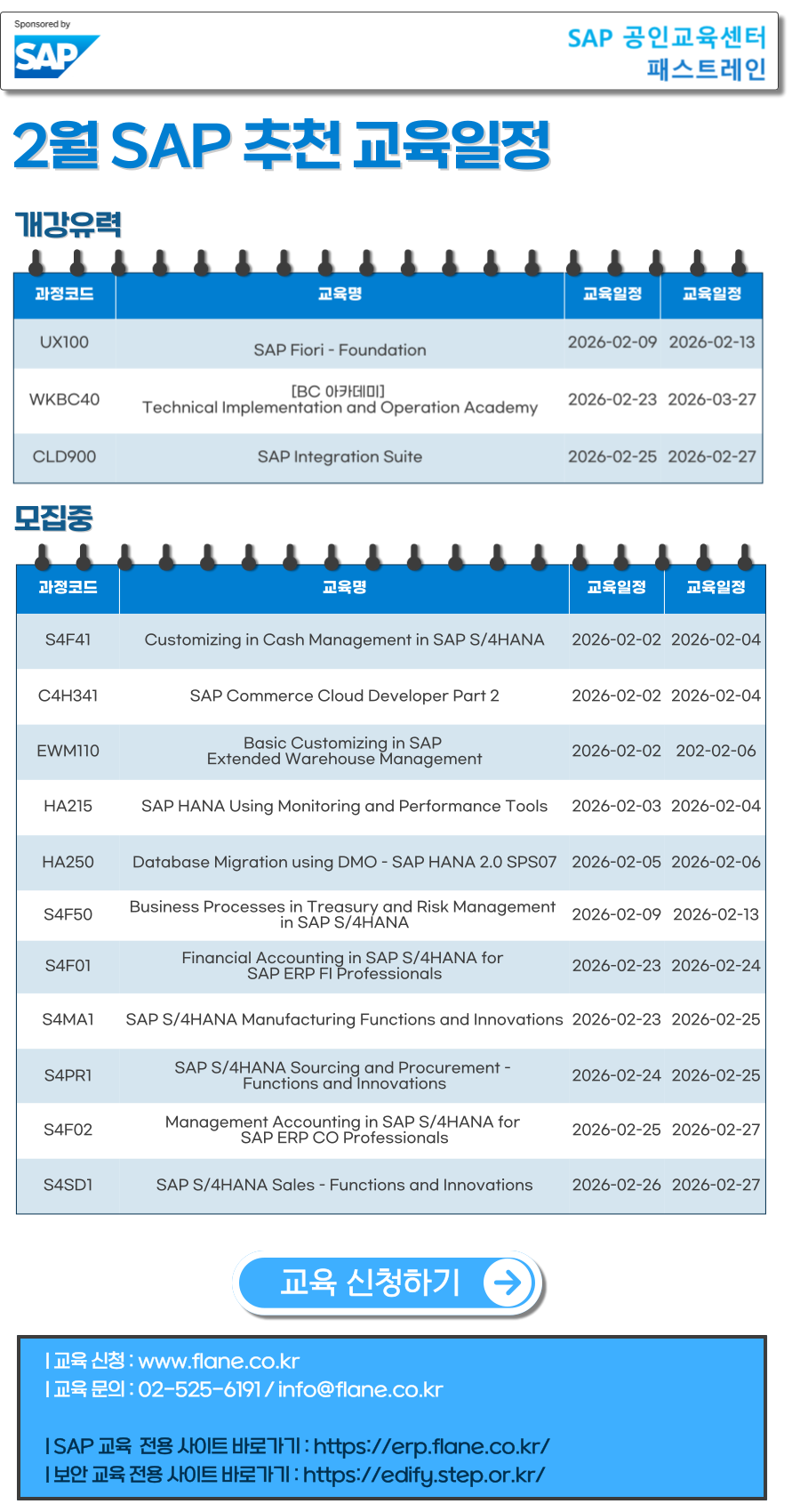 회원이 되면, SAP의 모든 교육 정보를 볼 수 있으며, 최신의 정보가 담긴 뉴스레터를 받아 볼 수 있습니다.