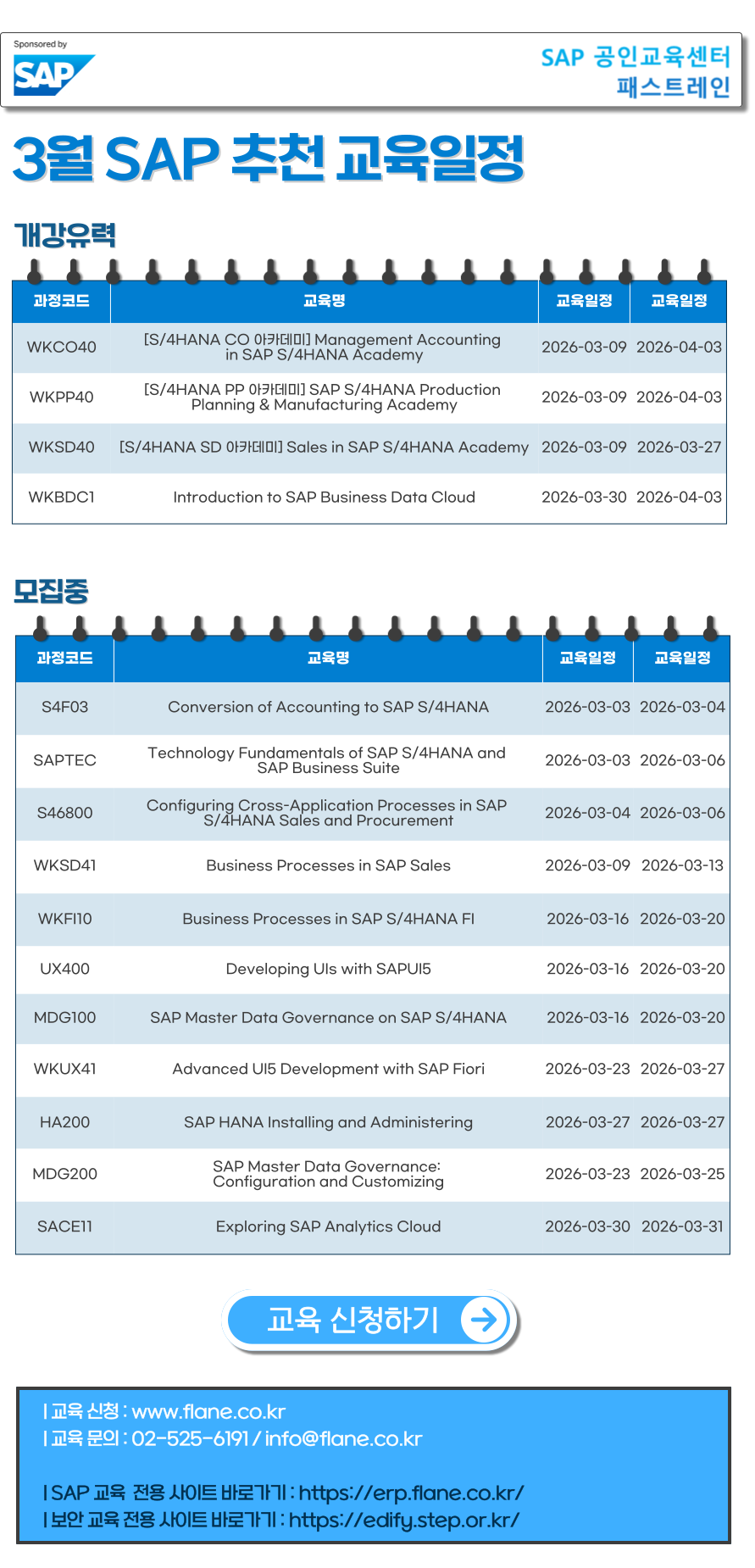 [패스트레인-SAP] 26년 3월 추천 교육일정 안내!